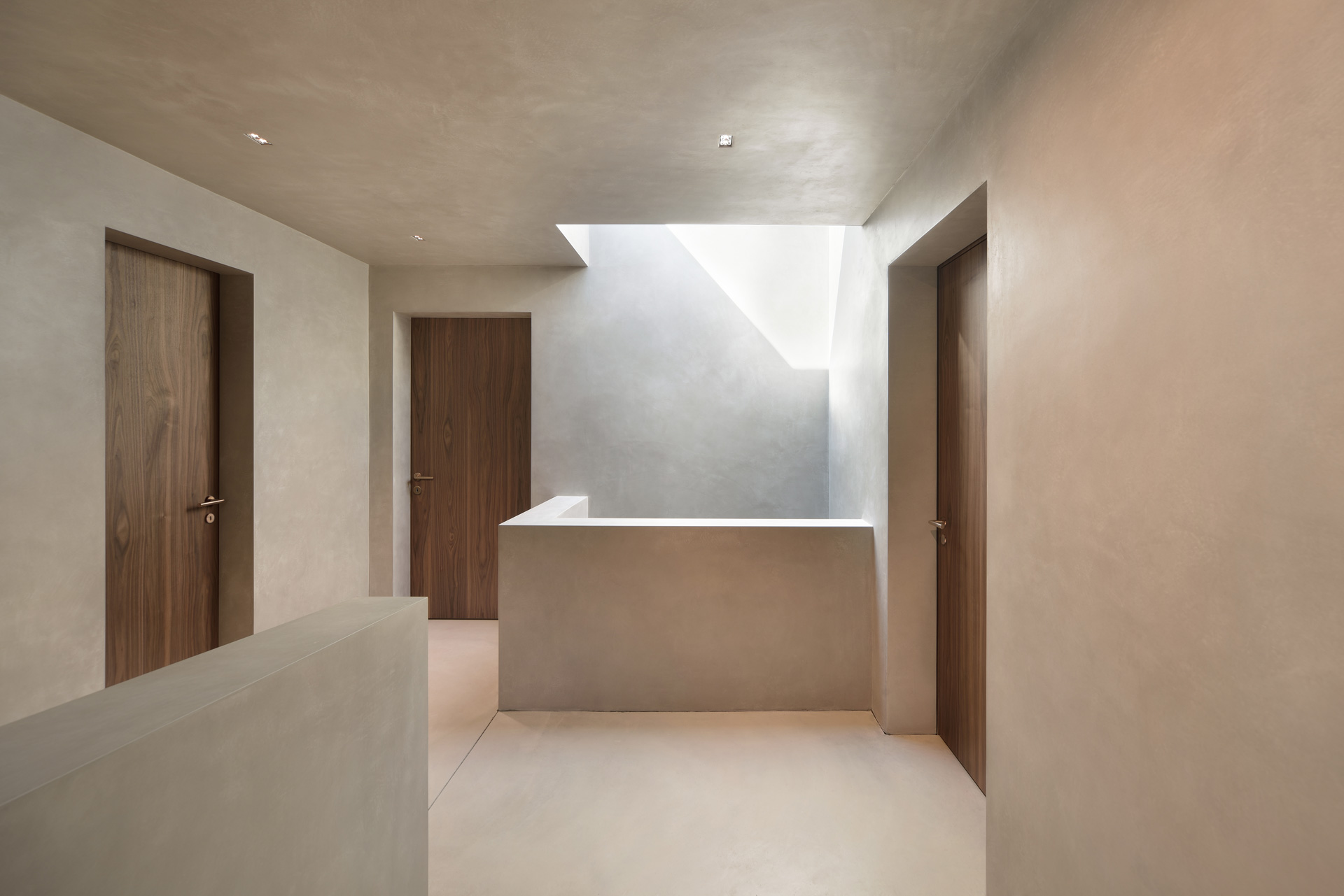 Die Lichtplanung strukturiert die Raumabfolge, die Formen- und Materialsprache der Beleuchtung unterstützt die Hierarchiestufen innerhalb der Treppenkerne.